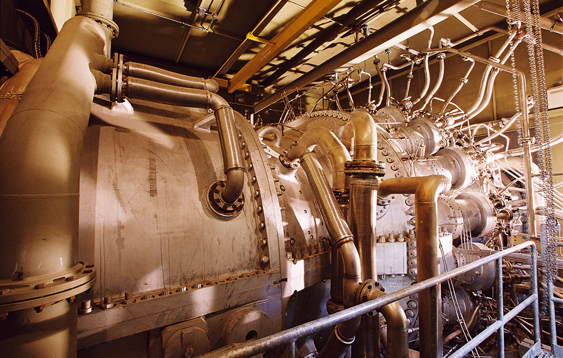 Las turbinas y las calderas se encuentran en el interior de sus respectivos edificios.